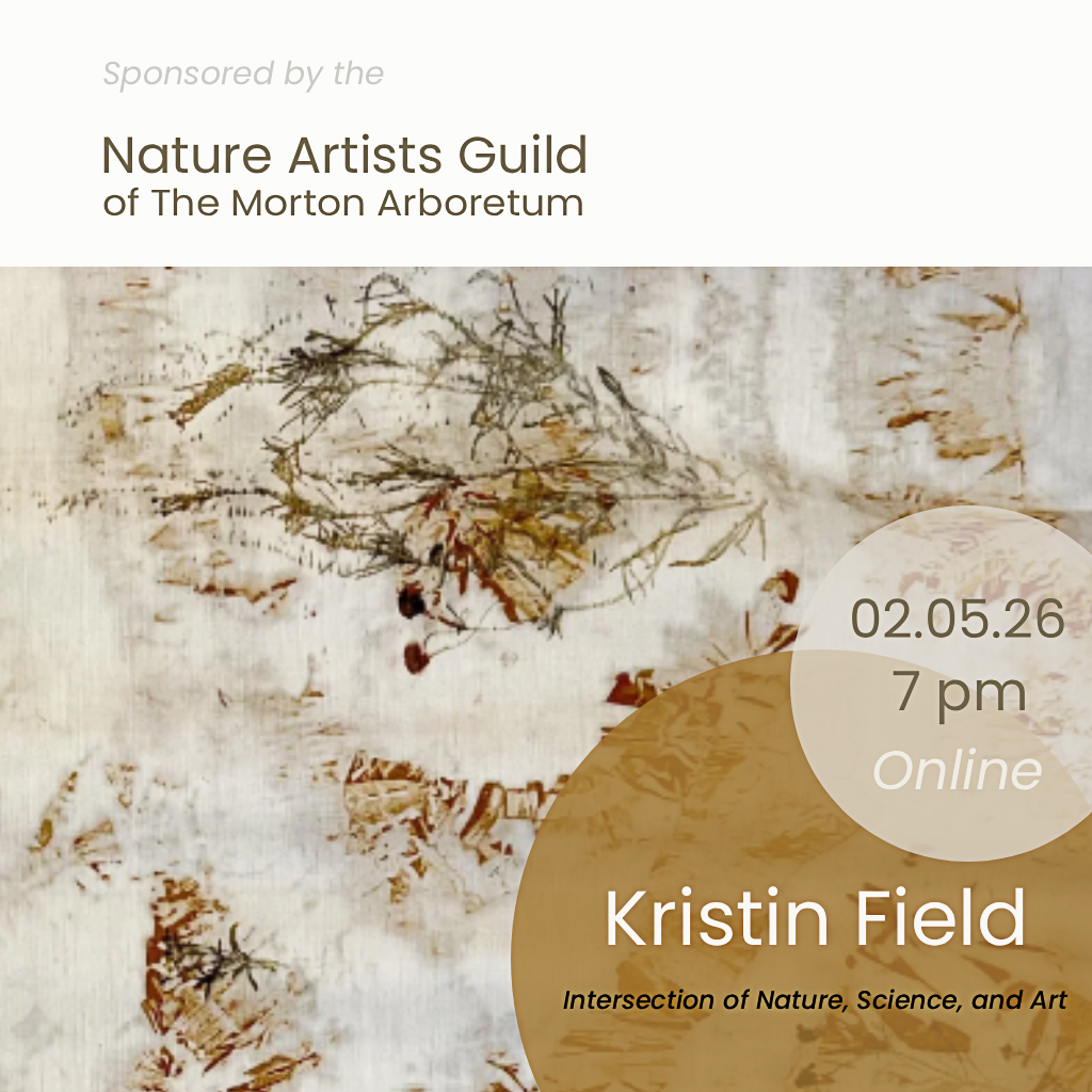 “Inspired by the intersection of nature, science, and art,” beautifully describes both the process and the finished works by textile artist Kristin Field. Kristin will share some of that inspiration in an online presentation, sponsored by the Nature Artists’ Guild of The Morton Arboretum, on Thursday, February 5, 2026 at 7 pm.