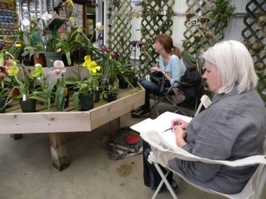 Nature Artists’ Guild of The Morton Arboretum sketching at Orchids by Hausermann