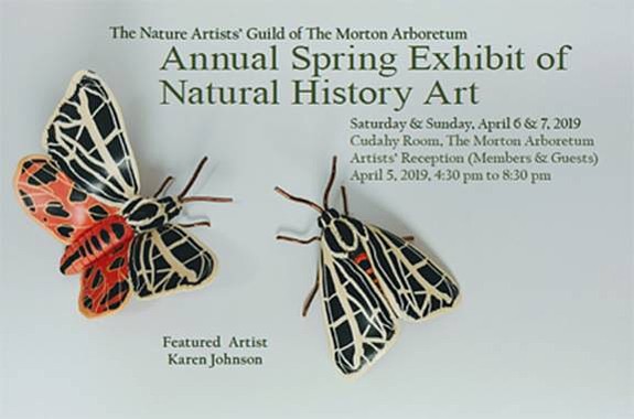 The 2019 Spring Exhibit of Natural History Art featuring approximately 150 works of art by nearly 50 members of the Nature Artists’ Guild of The Morton Arboretum is only a few weeks away. The exhibit will be held in the Cudahy Room of the Administration (and Library) building at the Arboretum on the weekend of April 6 and 7, 2019. An Artists’ Reception for members of the Arboretum and guests of the artists will be held on the evening of April 5, 2019.