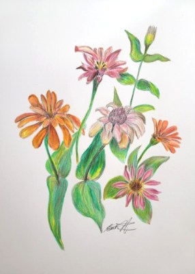 Sketch of zinnias, copyright Beata Nowak