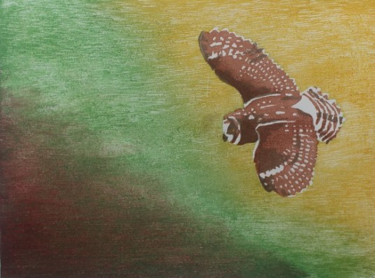 Pueo, Mokuhanga (Japanese wood block print), copyright Arlene Widrevitz