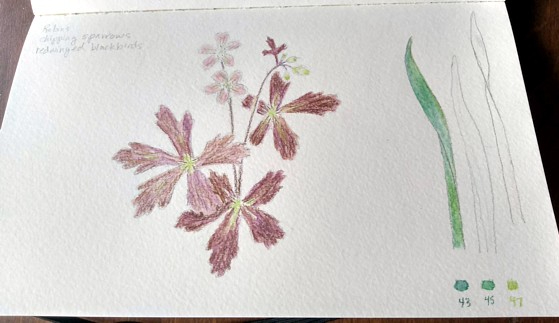 Whether on a solitary trip to the prairie or while participating in the paint-out at The Morton Arboretum, members of the Nature Artists’ Guild found plenty of spring treasures to sketch last week. Here are some that members have shared (please click on any image for a full version) –