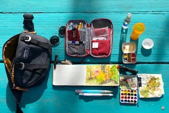 Maggie Mardis will “discuss and show my Travel Sketchbooks and Travel Art Kits. I will have watercolor, colored pencil and ballpoint pen art kits set up and sketchbooks to match in those mediums.”