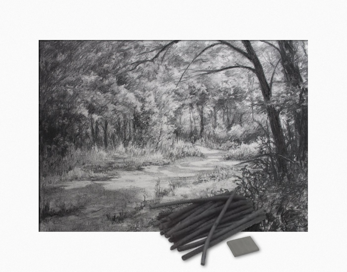 A sheet of paper, a kneaded eraser, and a few sticks of charcoal are all one needs to create nuanced and evocative works of art.