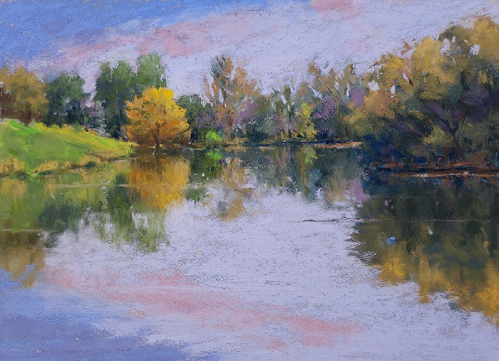 Lake Marmo Reflections, copyright Laverne Bohlin, began as a demonstration at a recent Arboretum workshop.