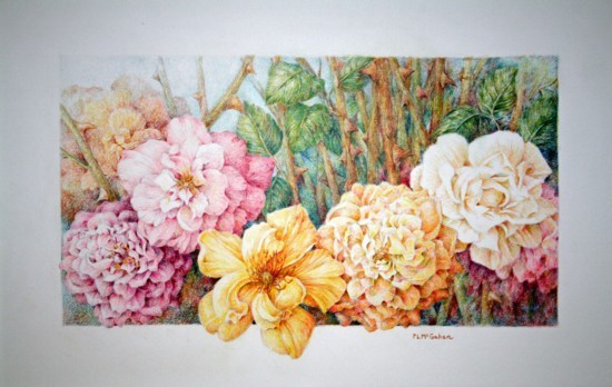 Colored pencil drawing on slate tile, copyright Mary Ann Jimenez.