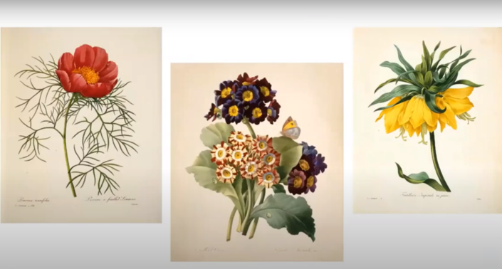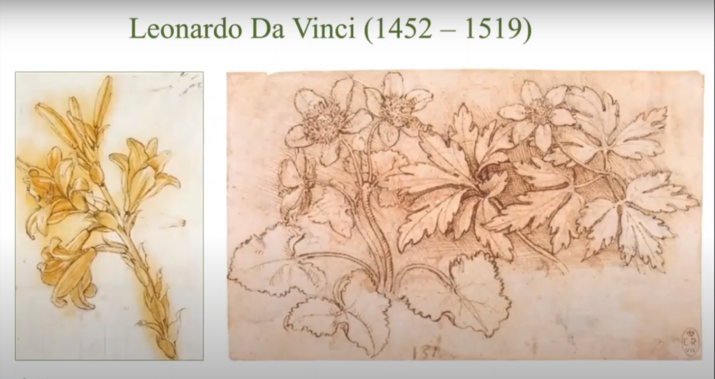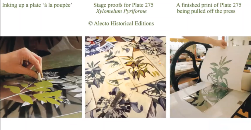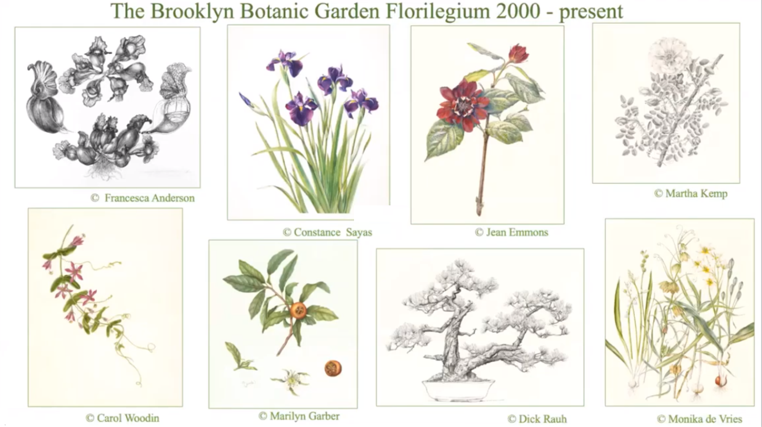 The hour-long webinar features people, places, and processes throughout the long history of botanical art. The screen clippings here are just a glimpse into this fascinating presentation.