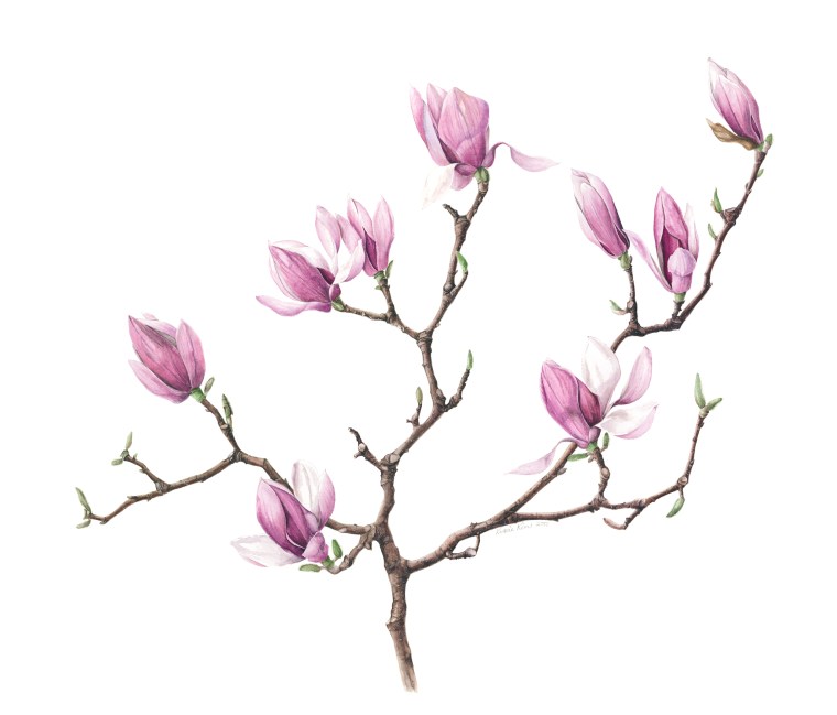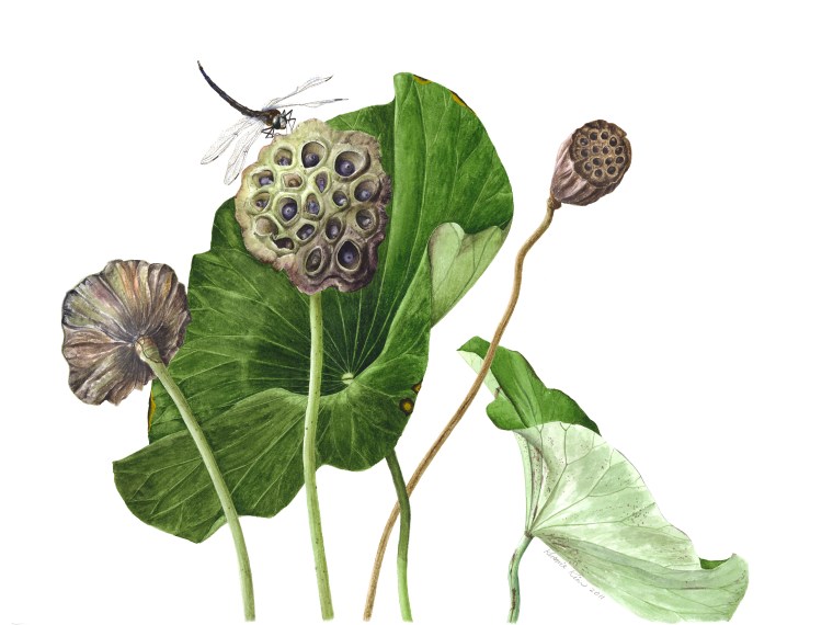 I have received the Botanical Art Certificate in 2006 at the Morton Arboretum. Along the way, many wonderful, inspiring artist teachers taught me to make who I am now as a botanical artist. Especially, I had never been exposed to watercolor before Bobbie Brown’s class, but still possessed the vague fear about the unforgiveness of this medium, particularly compared to pastel I used to. Through her teaching, though, not only I was able to overcome the fear but also watercolor became my favorite medium because of its charming nature of delicacy and transparency.
