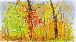 Woods in Fall, mixed media, copyright Marlene Vitek