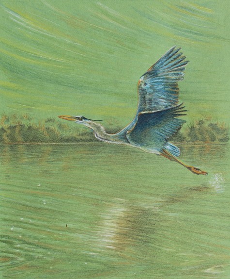 Blue Heron, mixed media, copyright Arlene Widrevitz