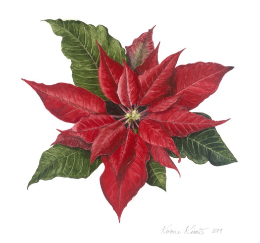 Poinsettia, watercolor, copyright Ku-mie Kim