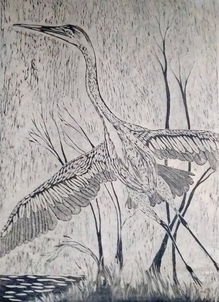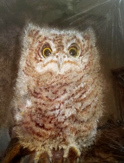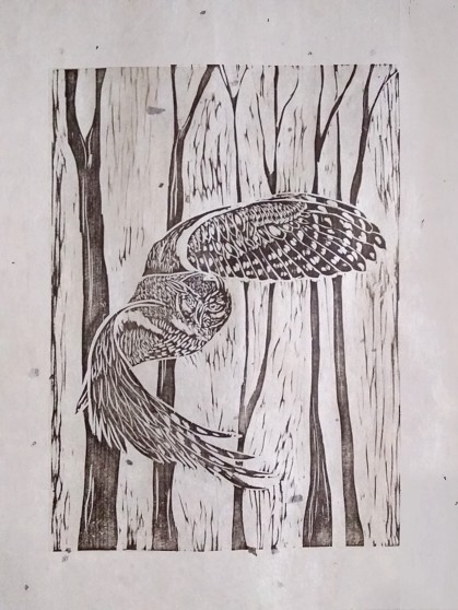 Great Horned Owl, scrachboard with ink, copyright Jill Adzia