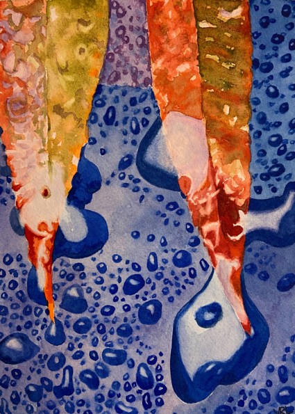 Orange leaves/blue drops, copyright Vicki Liszewski