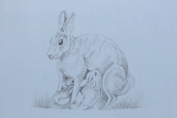 Rabbits, silverpoint, copyright Arlene Widrewitz