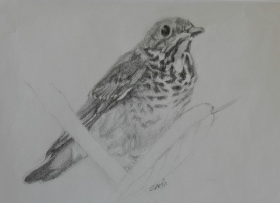 gray-cheeked-thrush-pencil-drawing-copyright-carla-schmakel