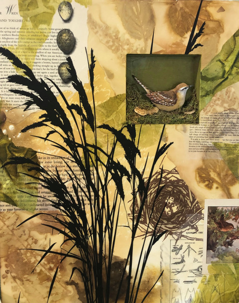 My goal is to convey a different kind of landscape or nature study experience. I seek to provide a micro and macro view that zooms out to the treetops but also zooms in on the tiny bracket fungus flanking a tree. I want to provide both a visual and tactile experience, whose shape breaks out of the traditional canvas. I incorporate conservation literature and field guides that stimulate the left brain nature nerd inside all of us! My goal is to inspire, in others, the same love of nature that I experience, to bring nature into their space, to motivate them to immerse themselves in it and experience the same peace and awe I do.